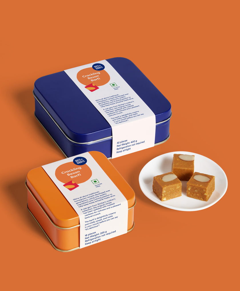 We bring an ingenious approach to handcrafted Indian sweets and savory snacks that are inspired by heirloom recipes from India’s diverse food traditions. Lovingly made with high-quality ingredients and no preservatives, our offerings are a modern tribute to the flavors we grew up with — only cleaner, more thoughtful, and wrapped in elegance.