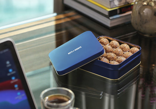 Our products are sold in beautiful, recyclable tins designed to preserve freshness and elevate your gifting experience. These aren’t just boxes; they’re keepsakes.